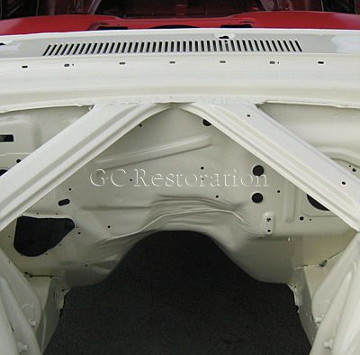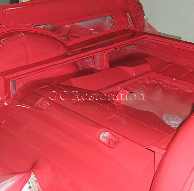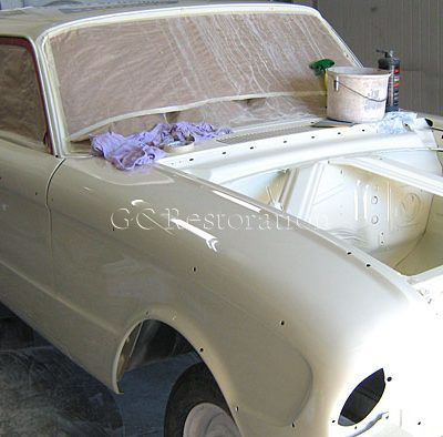 This was a complete roll in roll out full body restoration… Striped and sandblasted, rust repaired, panel formed, blocked and gapped, dismantled and painted, re-assembled, wet sanded and buffed to smooth high gloss shine.
